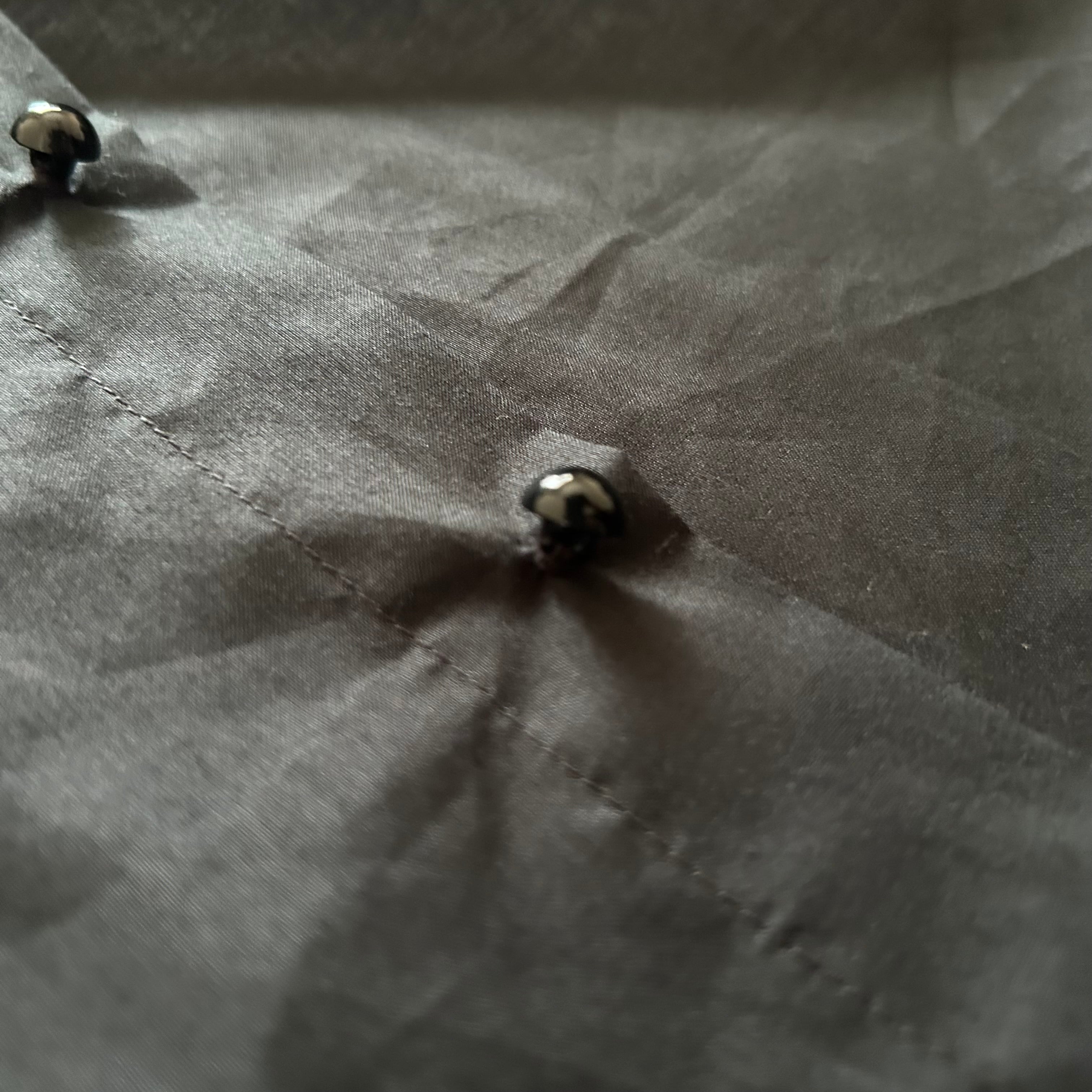 前立て、カフスにはコロンとした半球体の黒ボタンを使用。