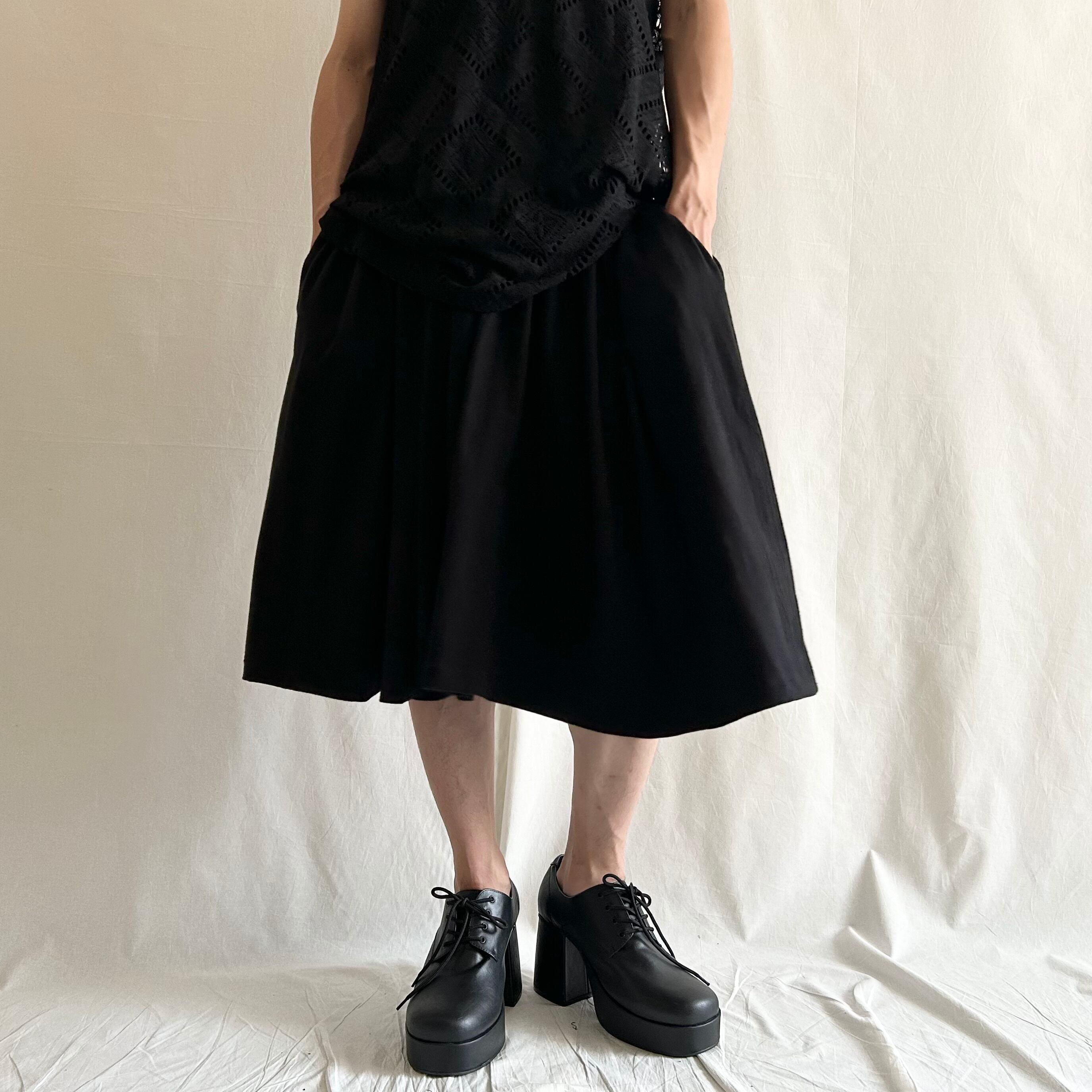 一見スカートのようにも見えますが、股が別れたパンツ型です。