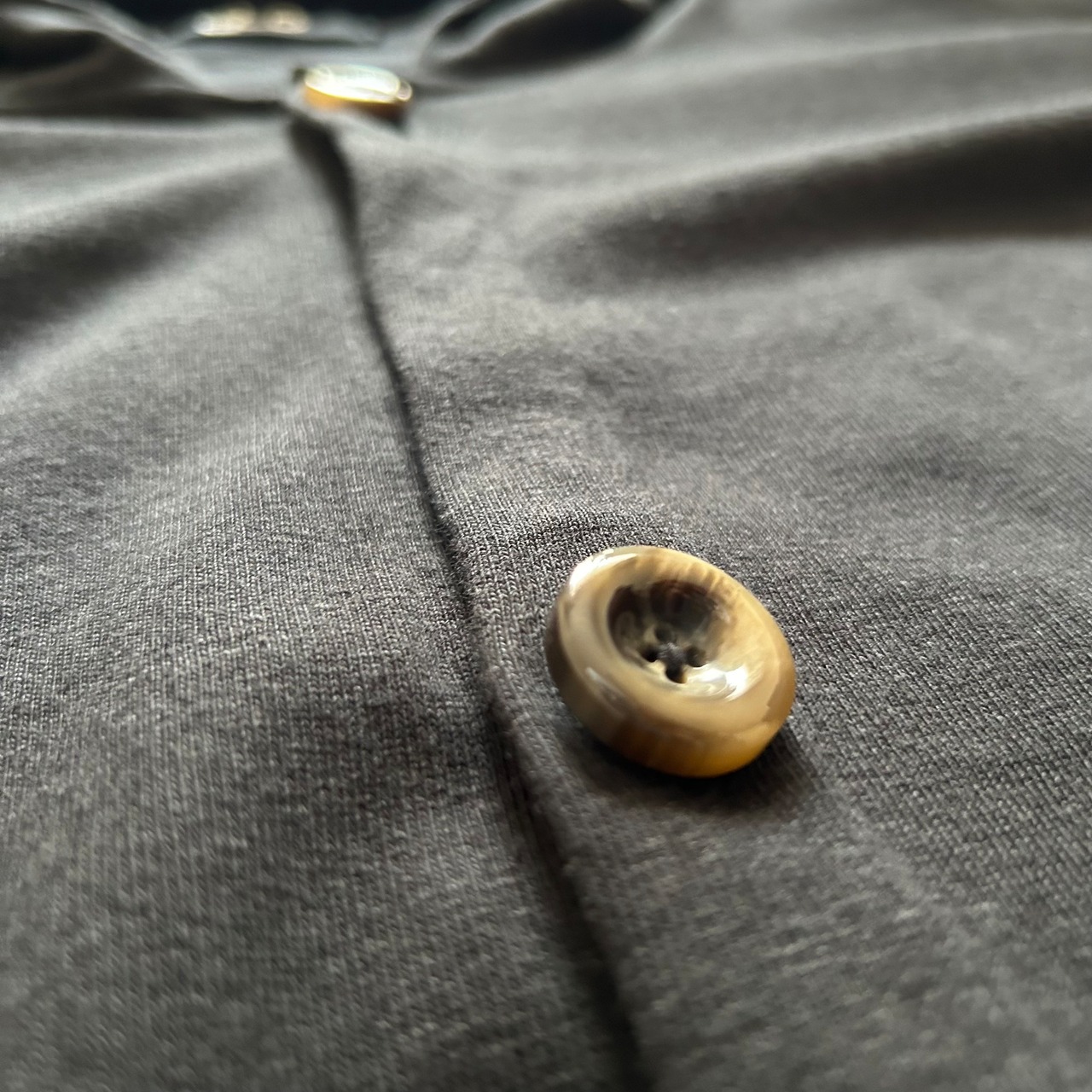 前立てにはマーブル調の23mm釦を使用。前立ては男前(右が下、左が上)の仕様です。