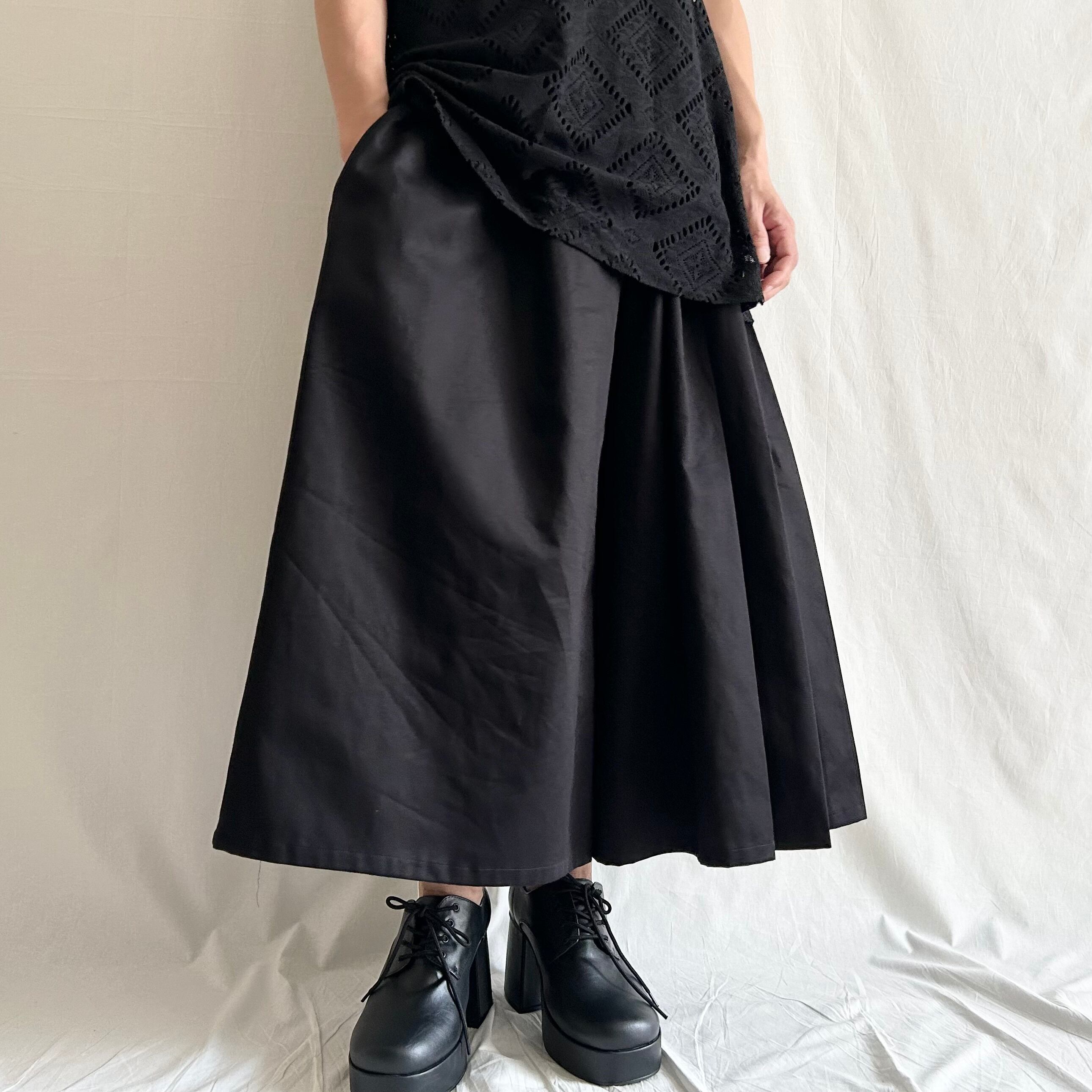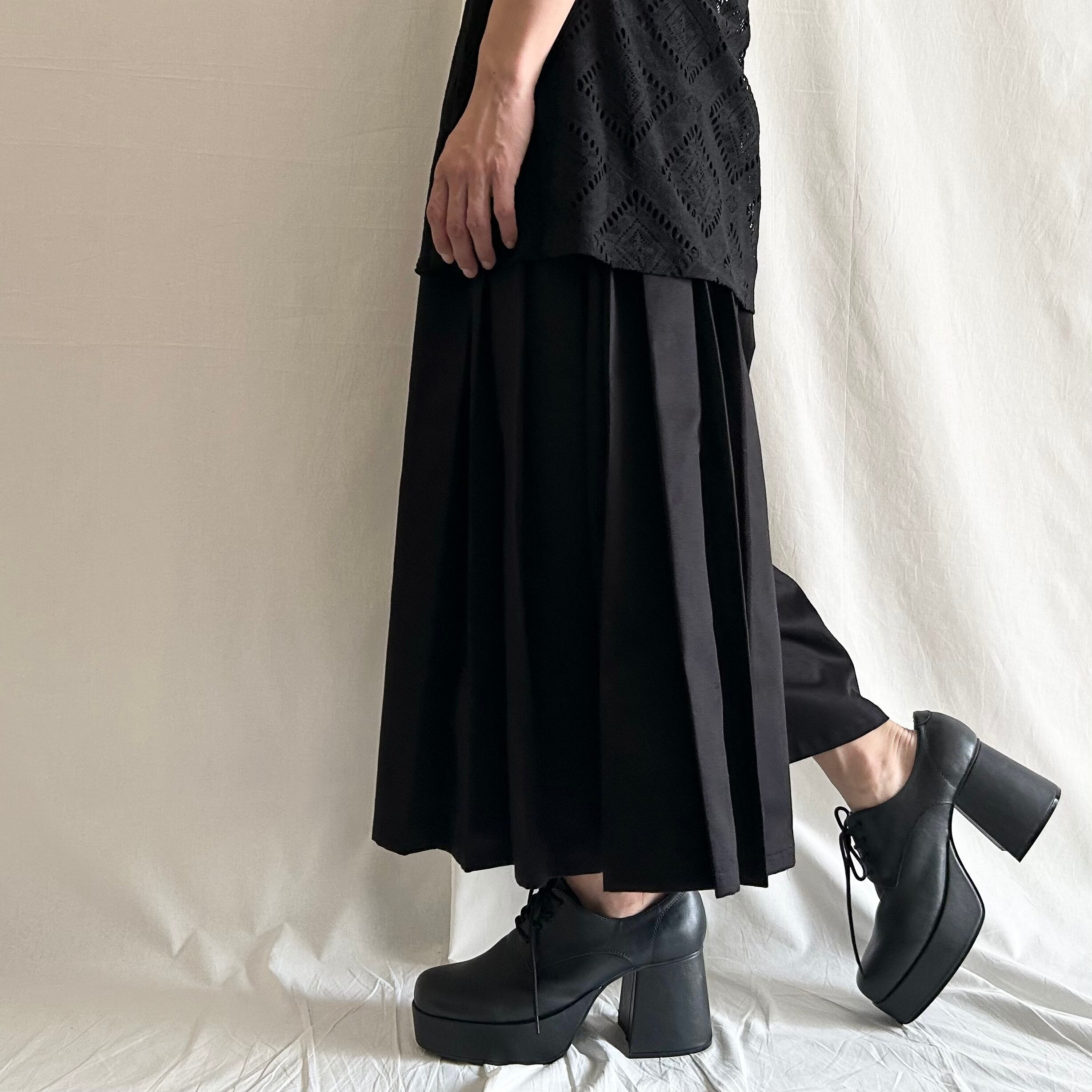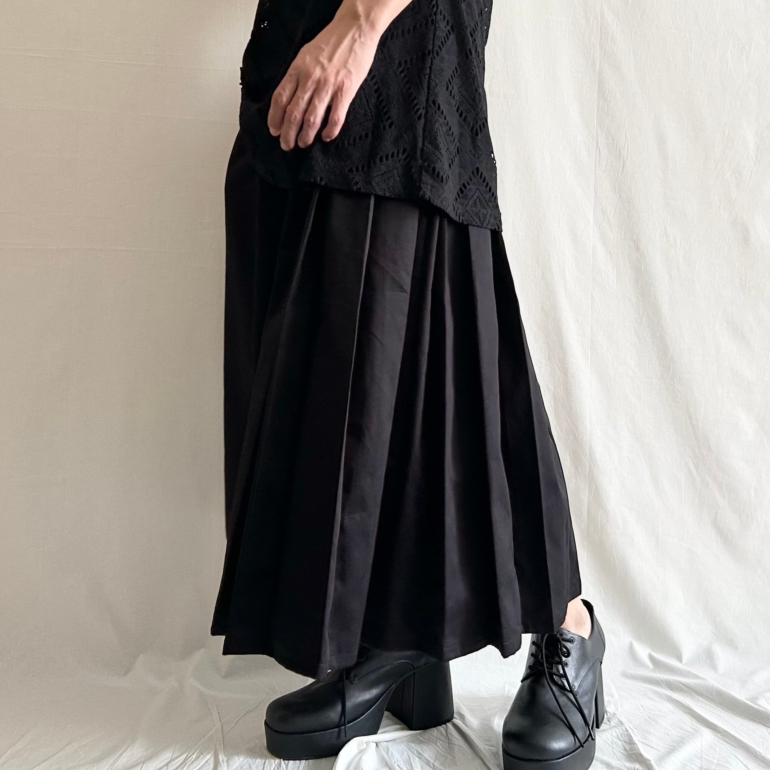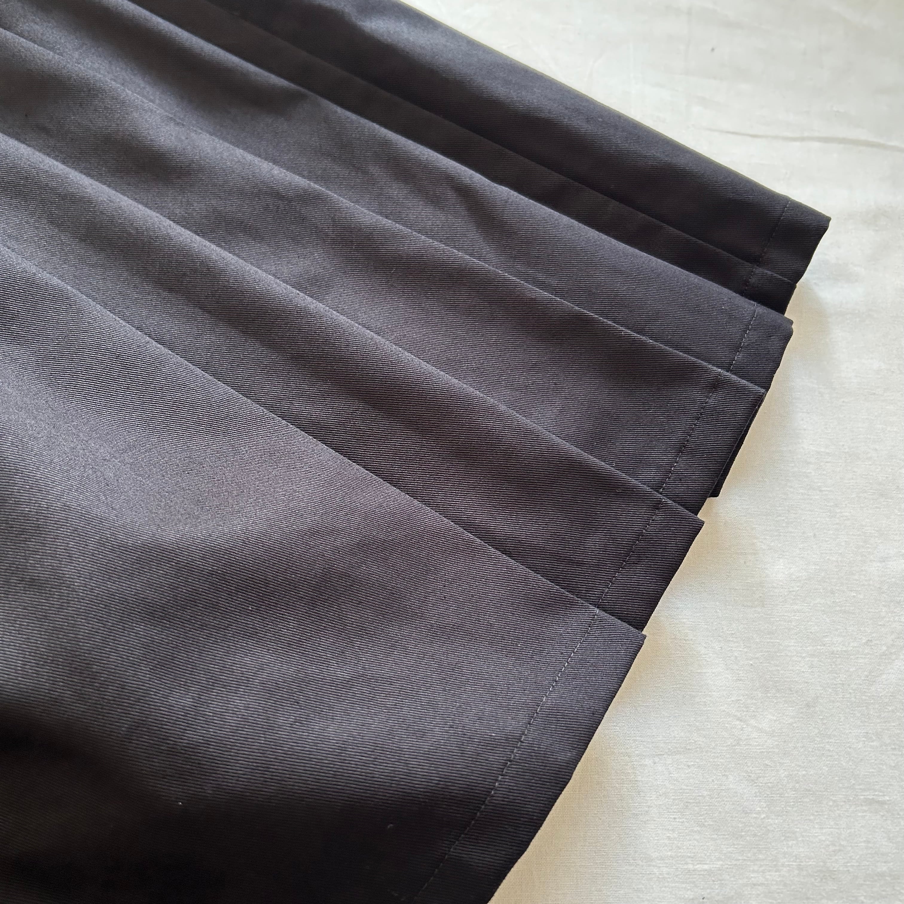プリーツ裏をステッチで固定させていますが、特別な加工は施していませんので、ご着用やお洗濯でプリーツが多少崩れる場合があります。
