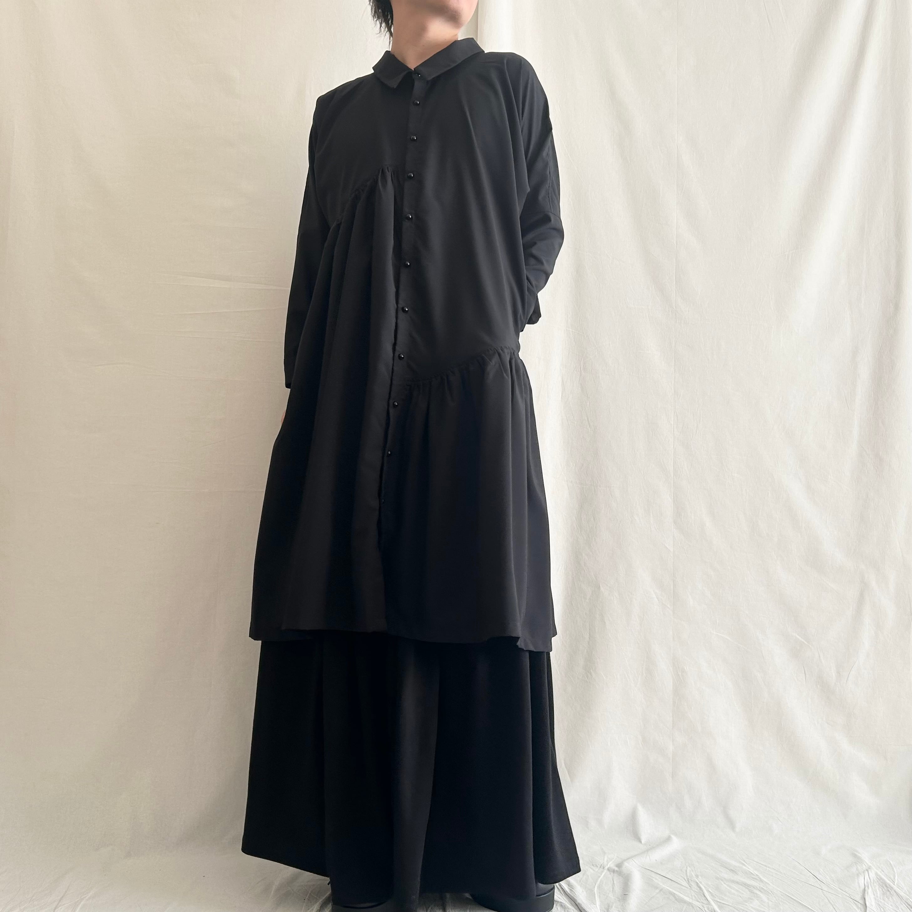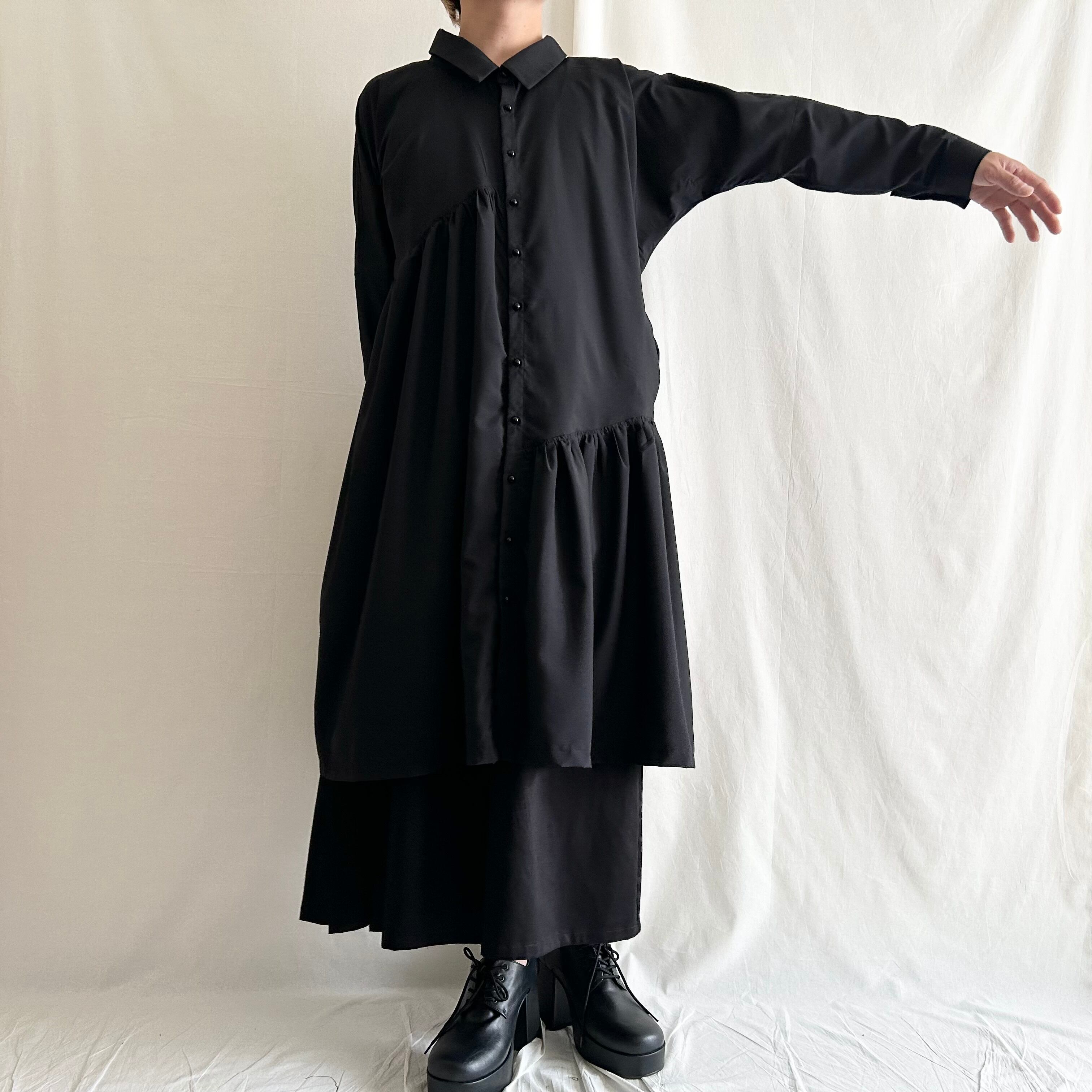 ぐるりとギャザーを寄せたロング丈のシャツを製作しました。
