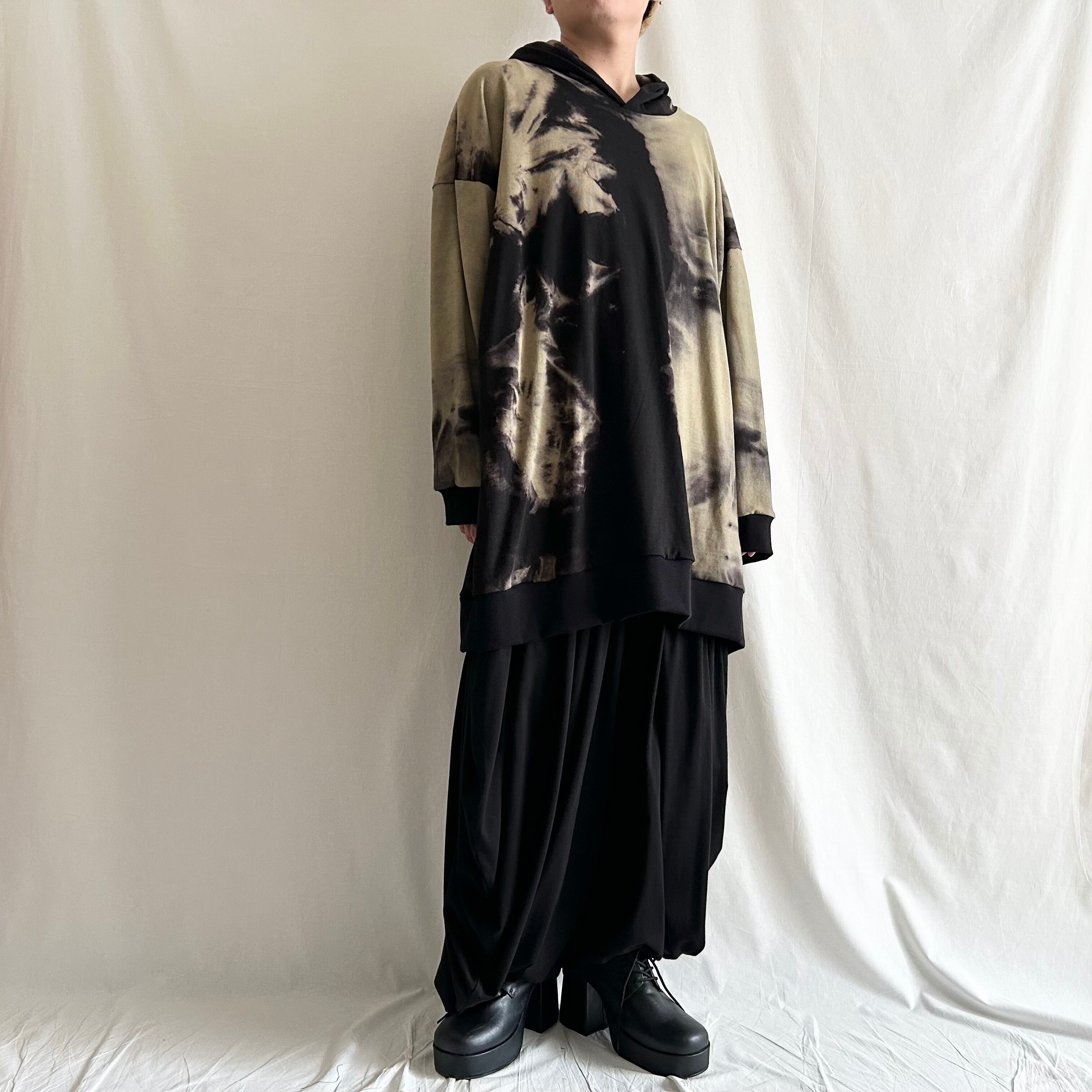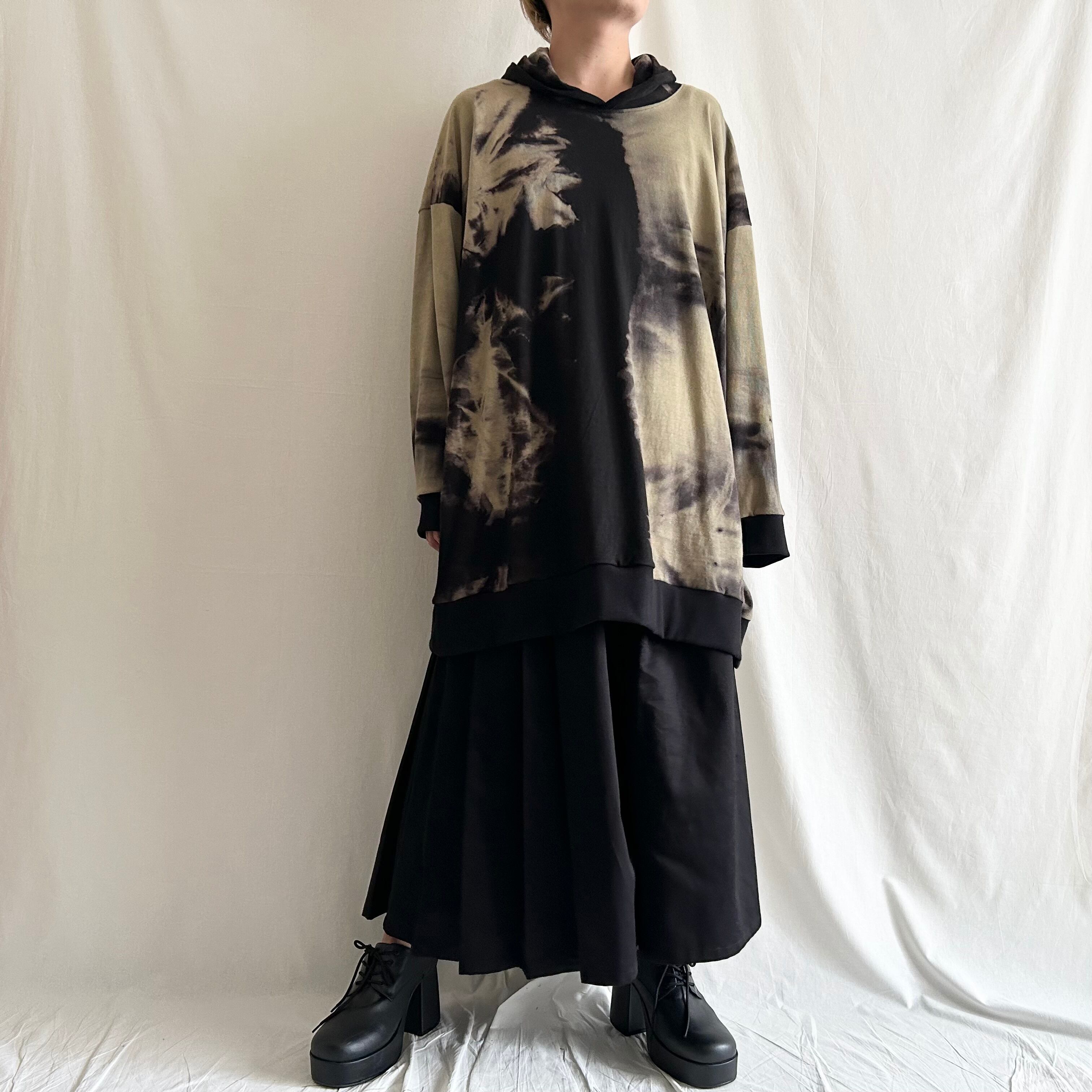 元々は真っ黒の天竺ニットを柄が出るよう色を抜きました。