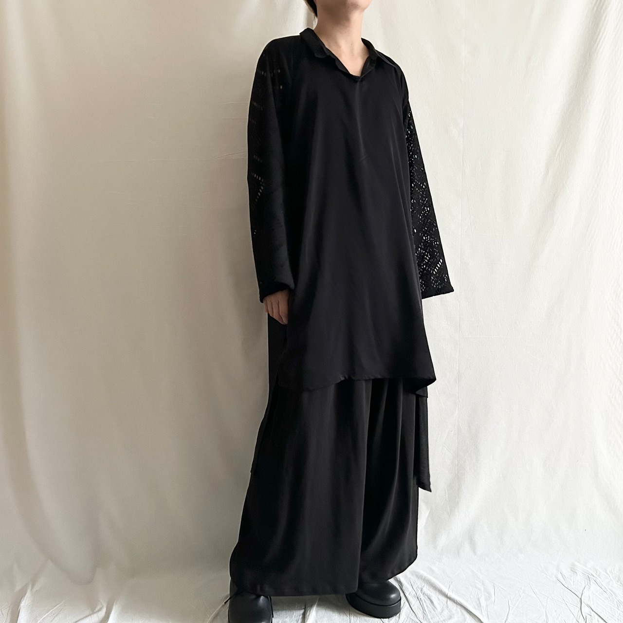 nalgeでは、「Drape」をキーワードに黒を基調としたゆるい服を製作しています。