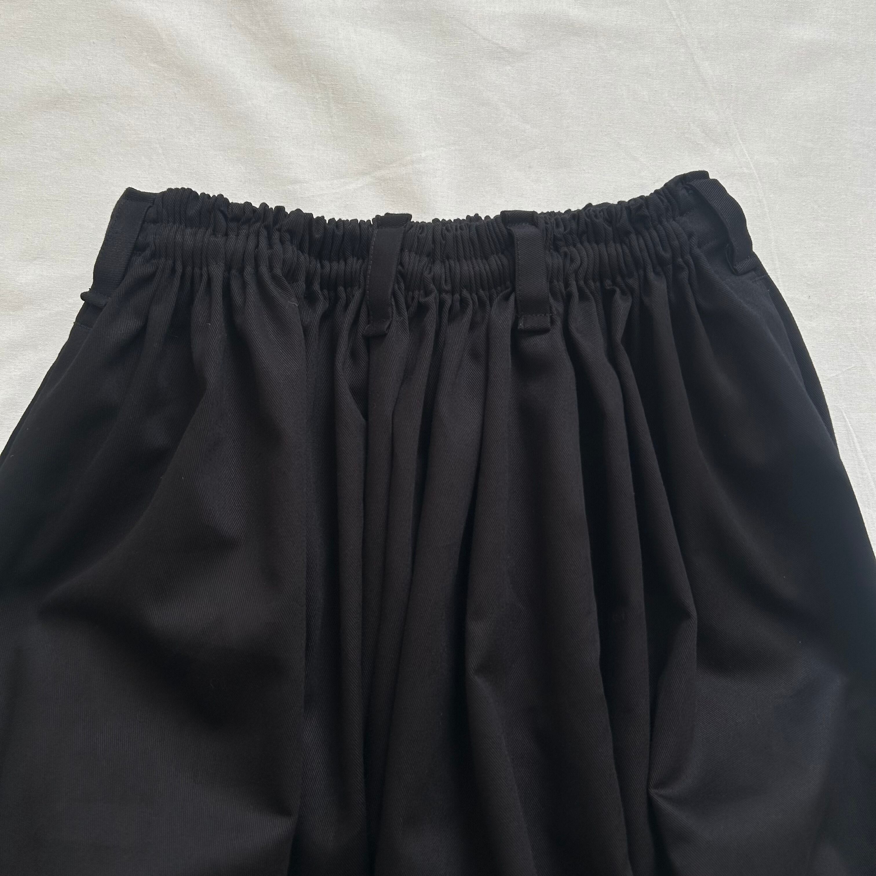 ウエストにゴムを通していますが、ずり落ちてくる可能性がありますので、ベルトを巻いてのご着用をおすすめします。ベルトループ付き。(4.5cm巾のベルトまで対応)