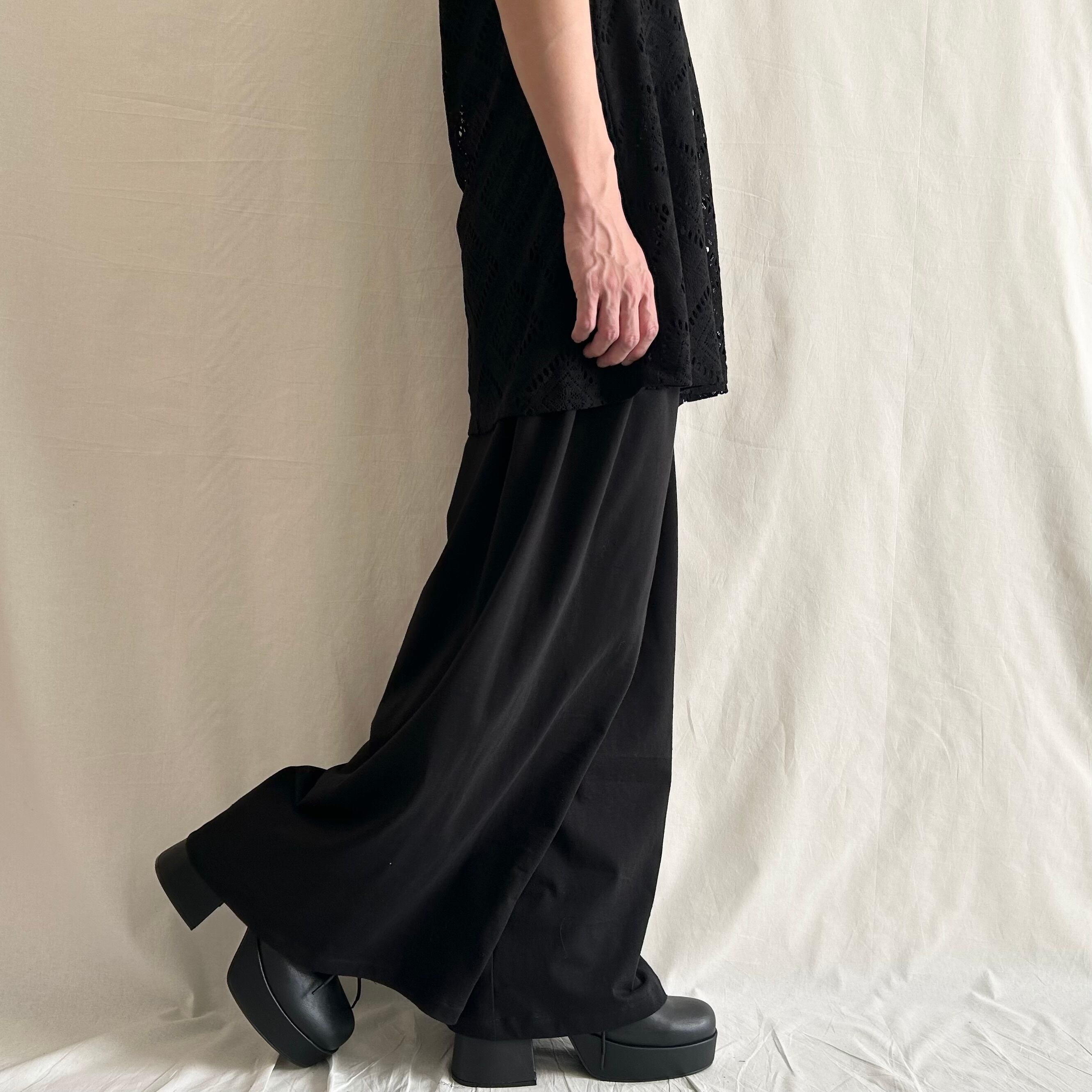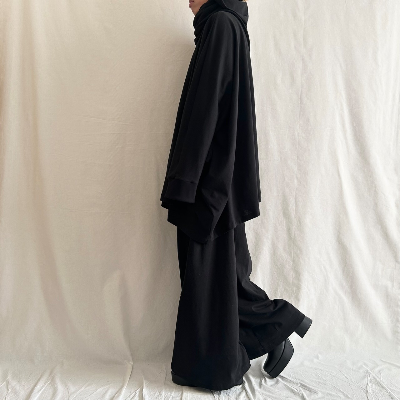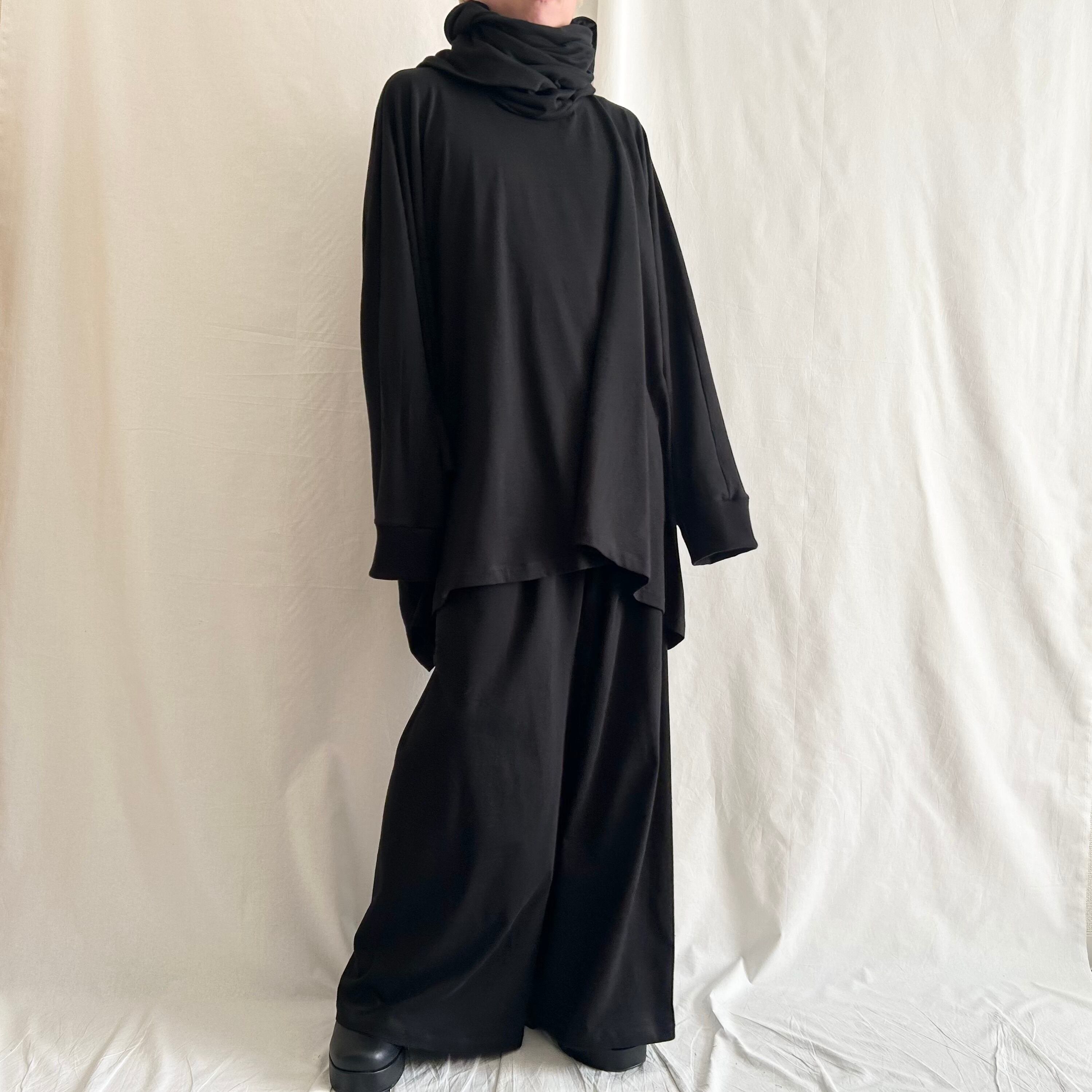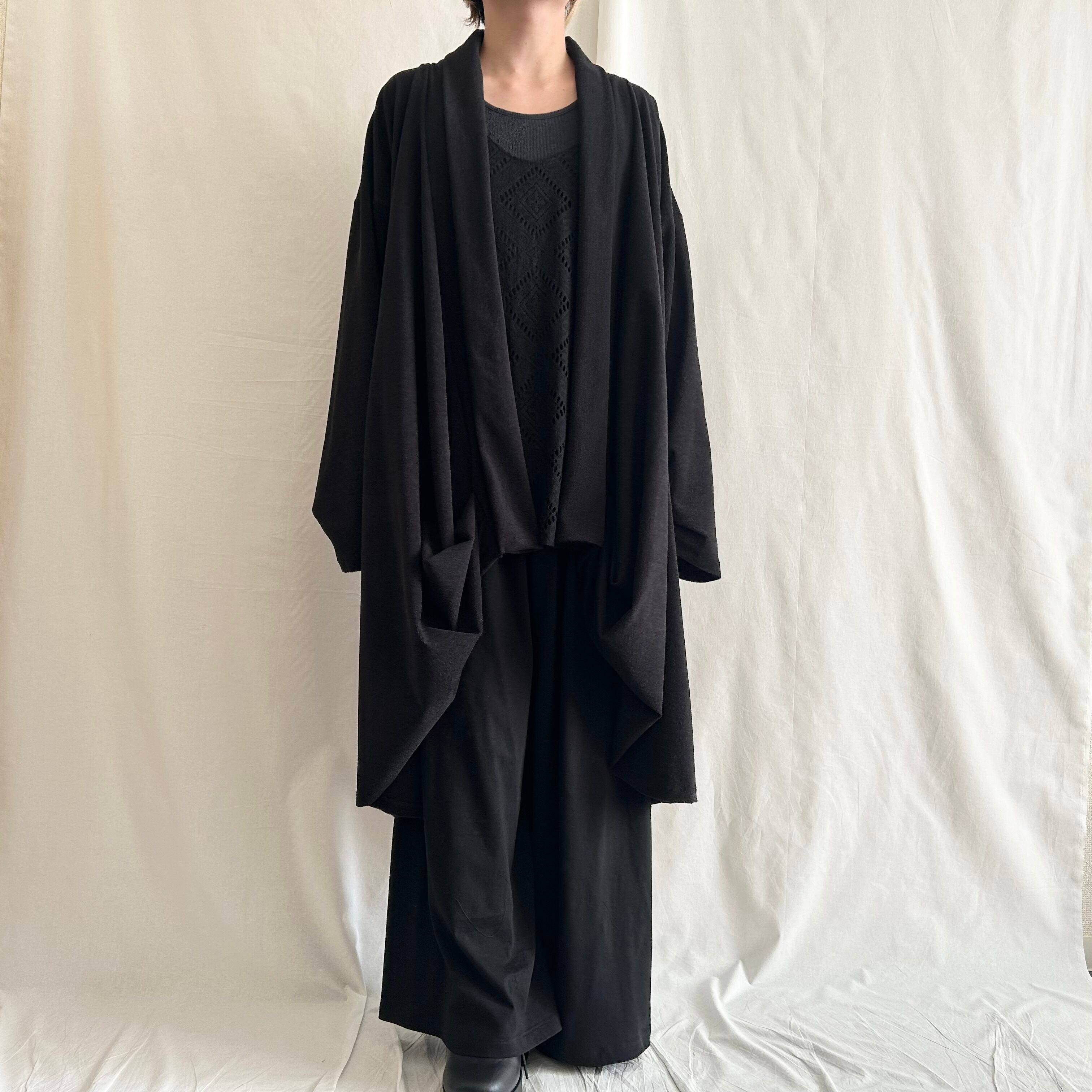 nalgeでは、「Drape」をキーワードに黒を基調としたゆるい服を製作しています。