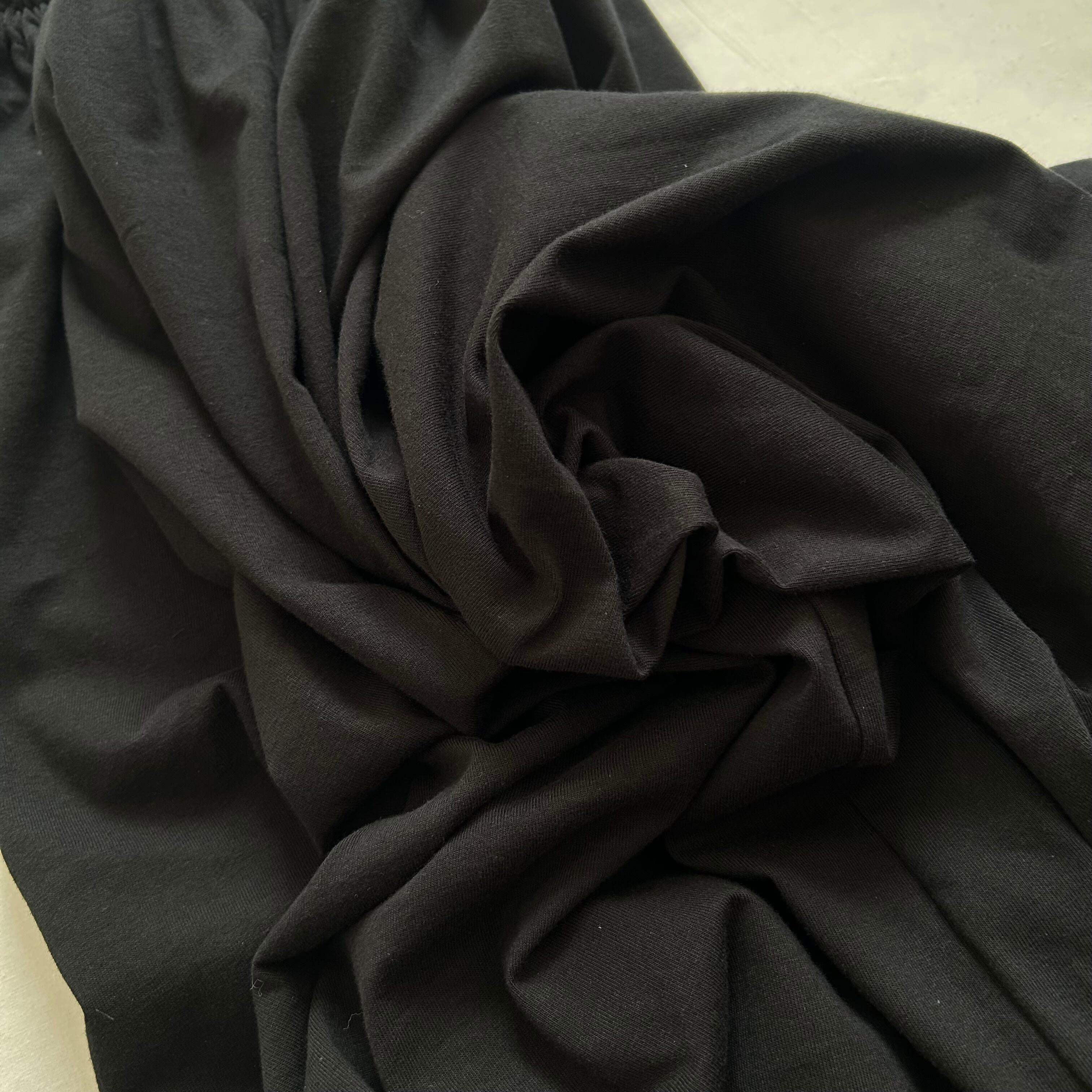 素材は綿の天竺ニットを使用。色は黒。
