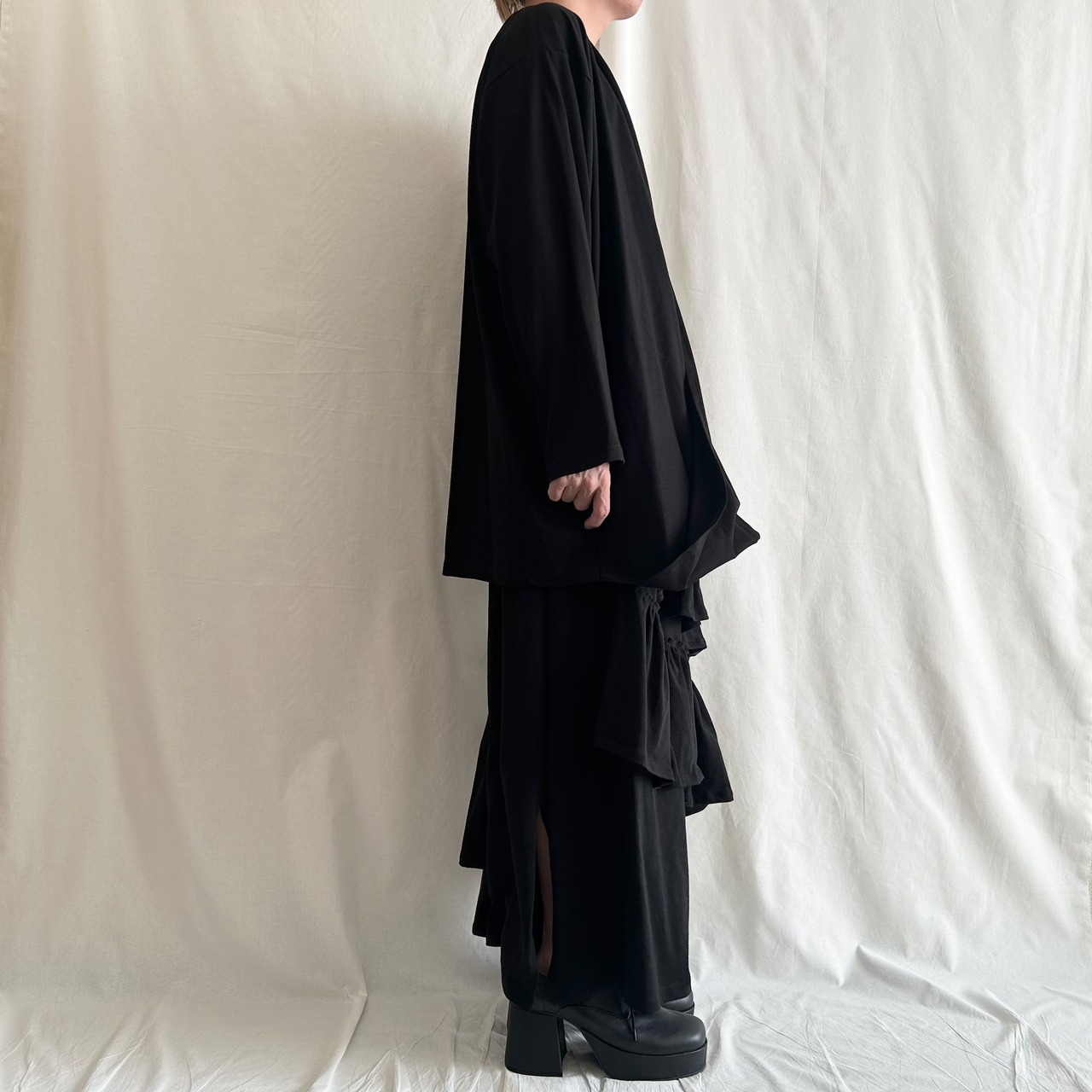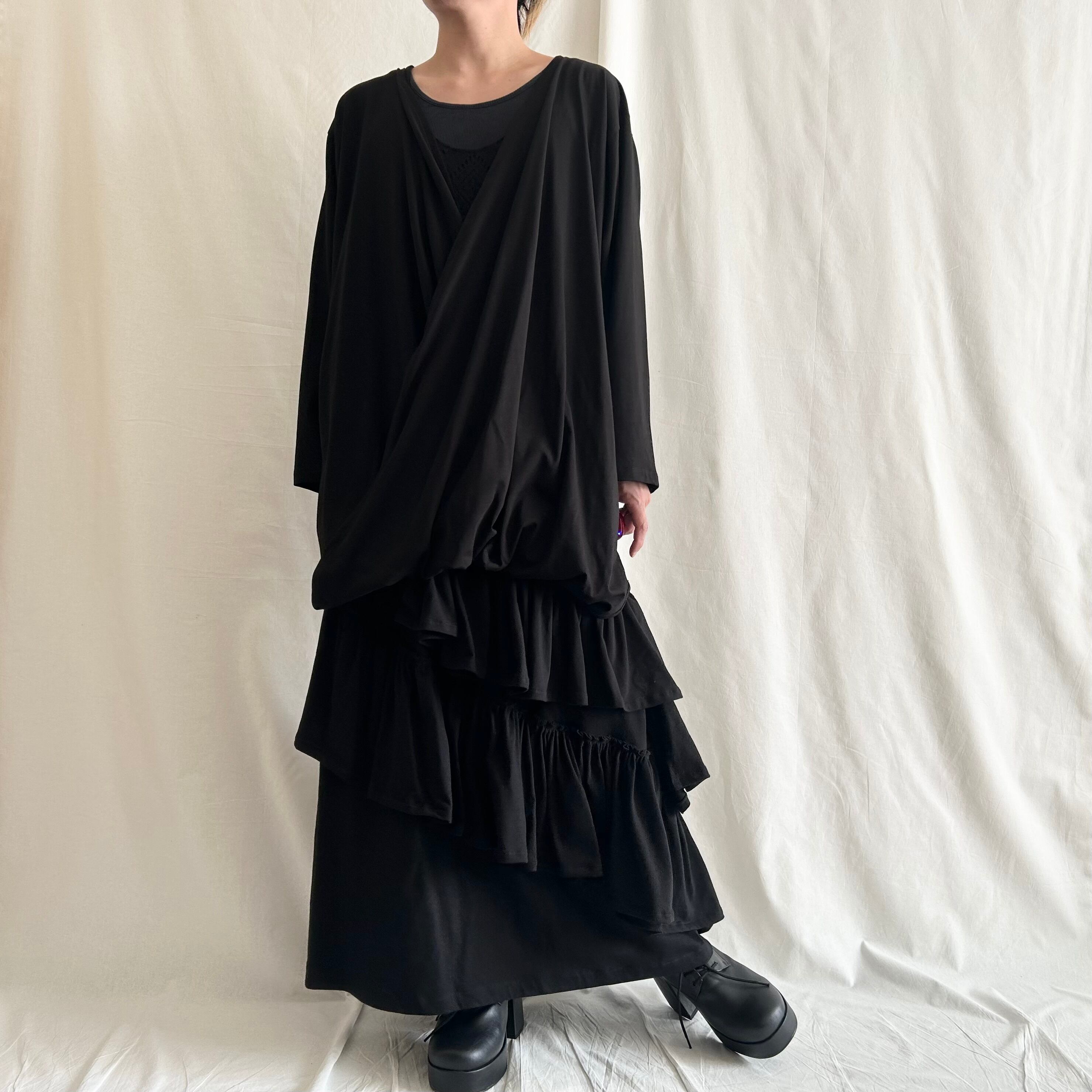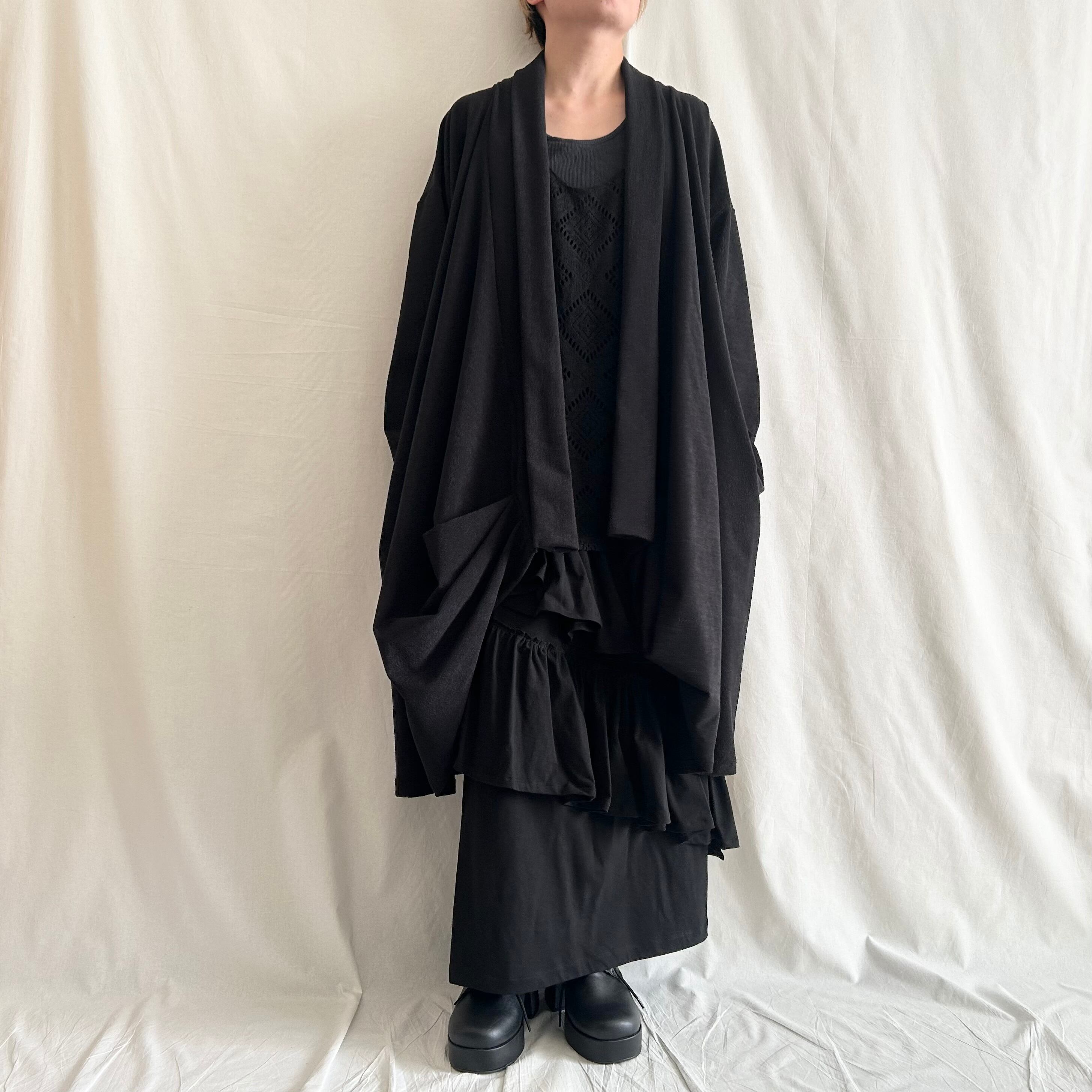 nalgeでは、「Drape」をキーワードに黒を基調としたゆるい服を製作しています。