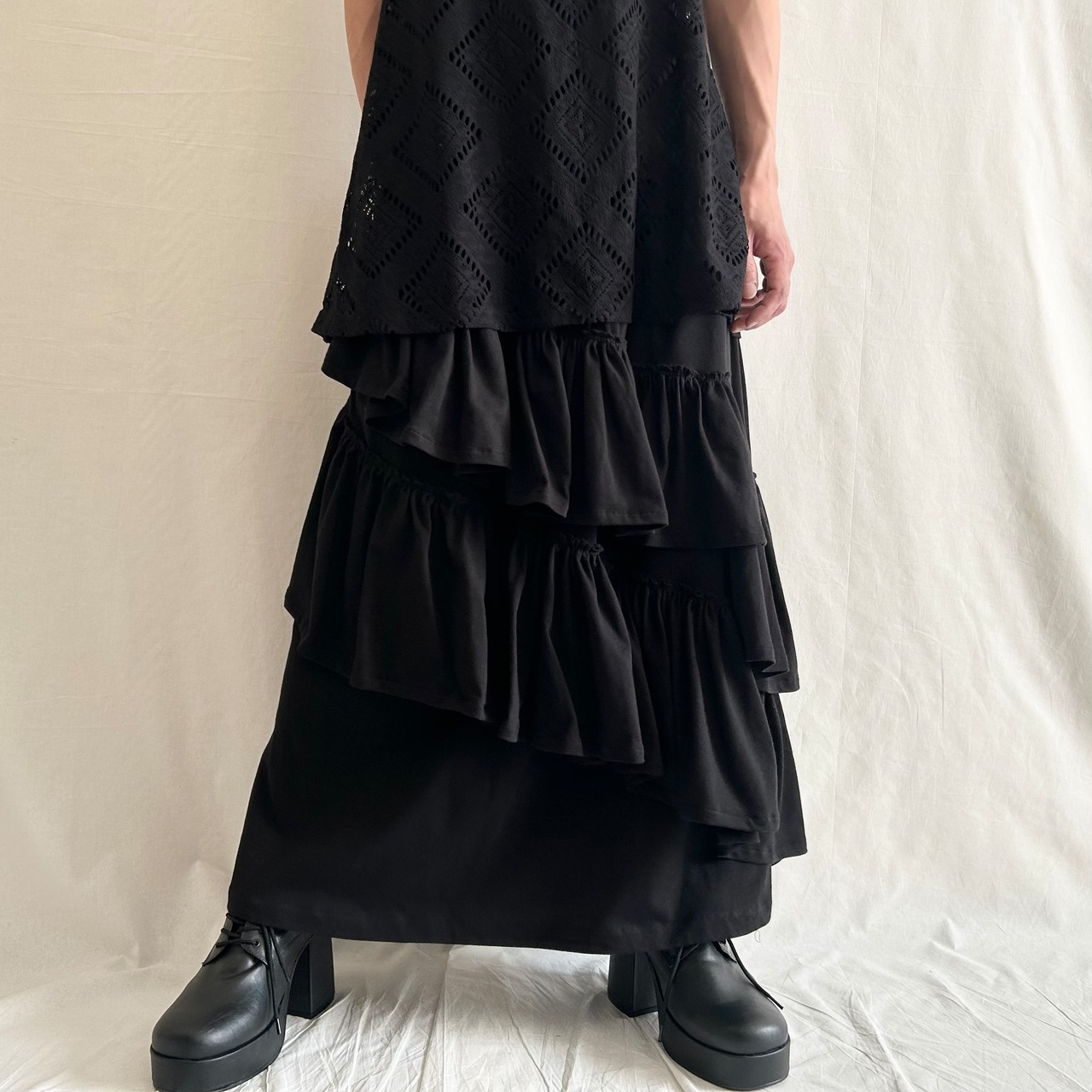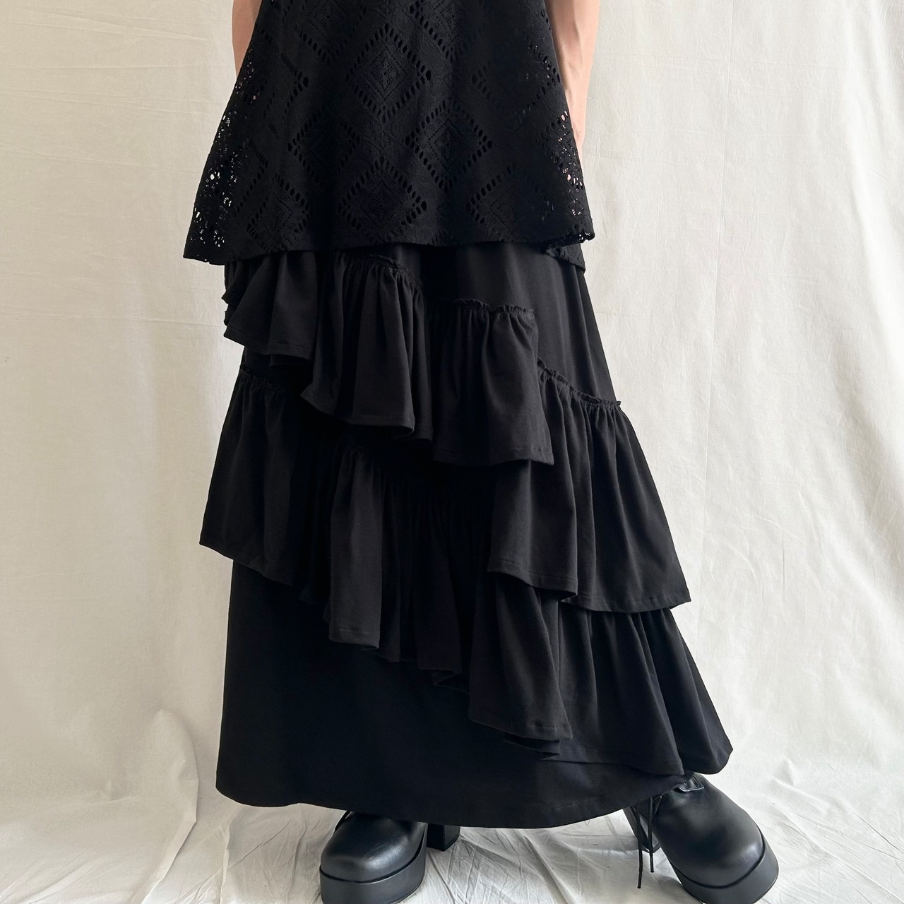 前後でフリルの位置を変えています。