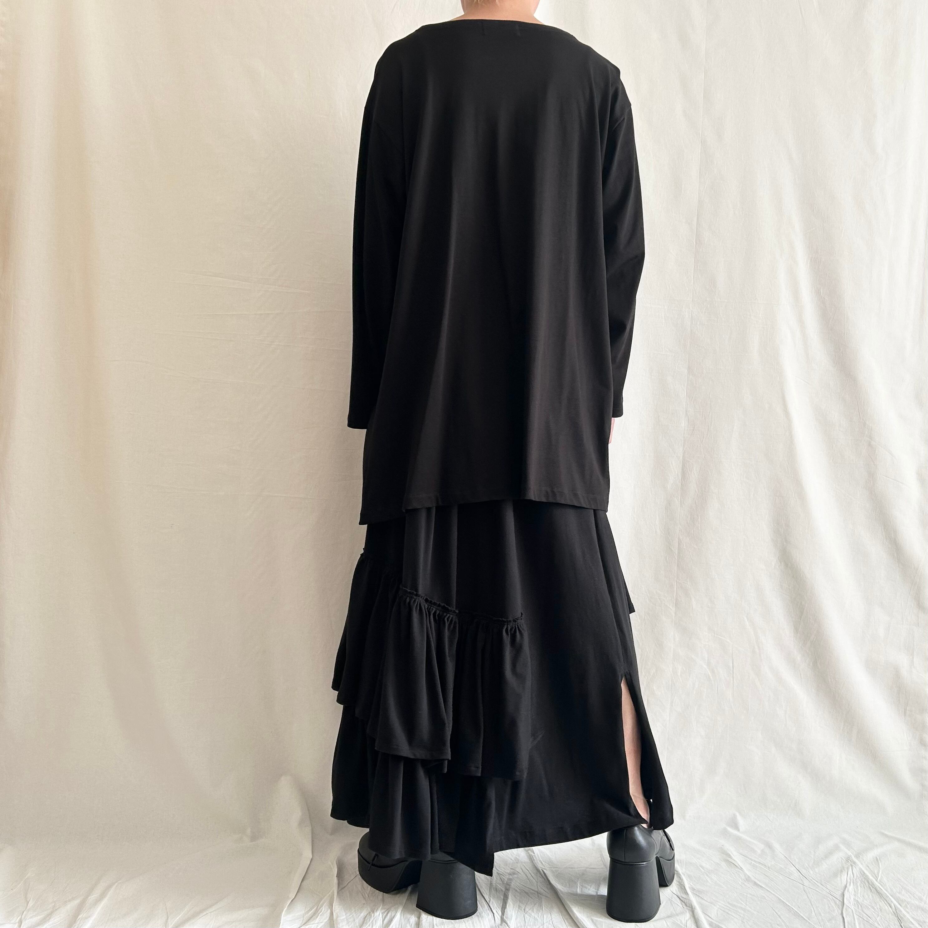 素材は綿の天竺ニットを使用。色は黒。