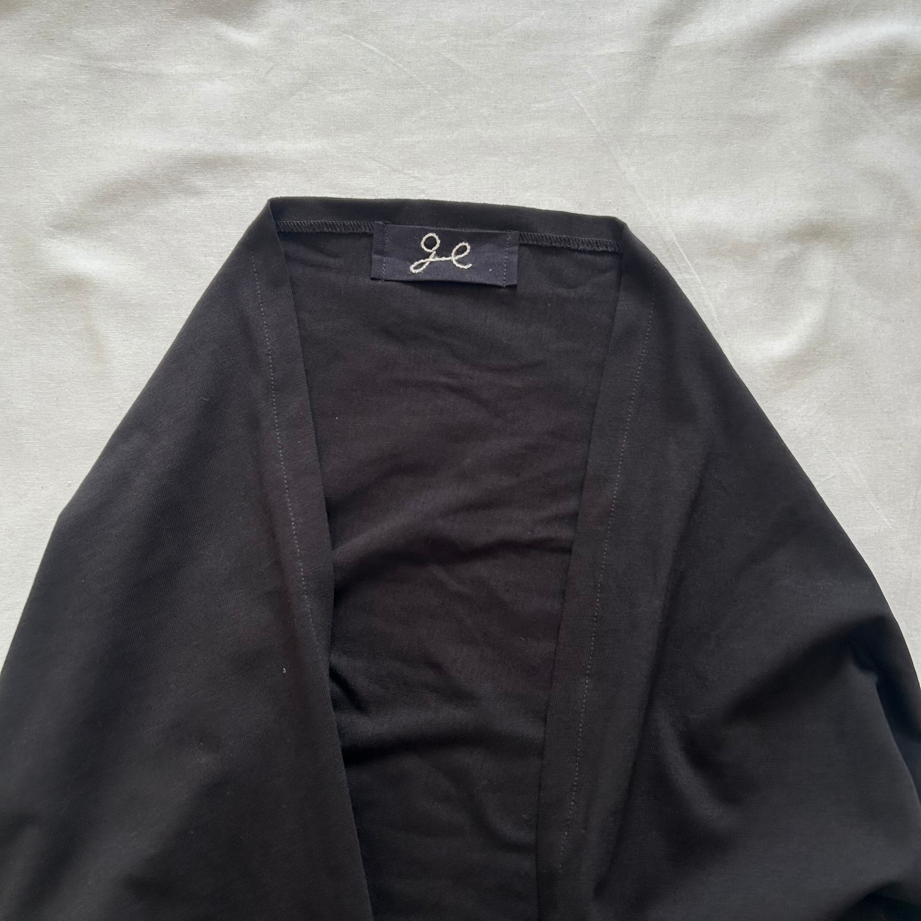 素材は中肉の綿天竺ニットを使用。色は黒。