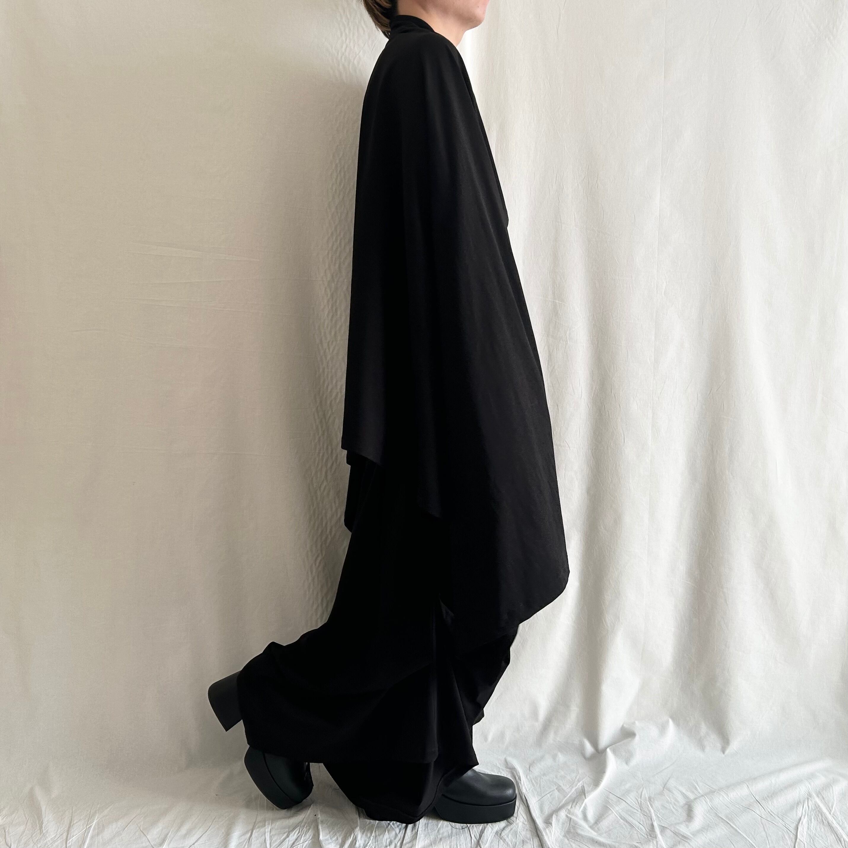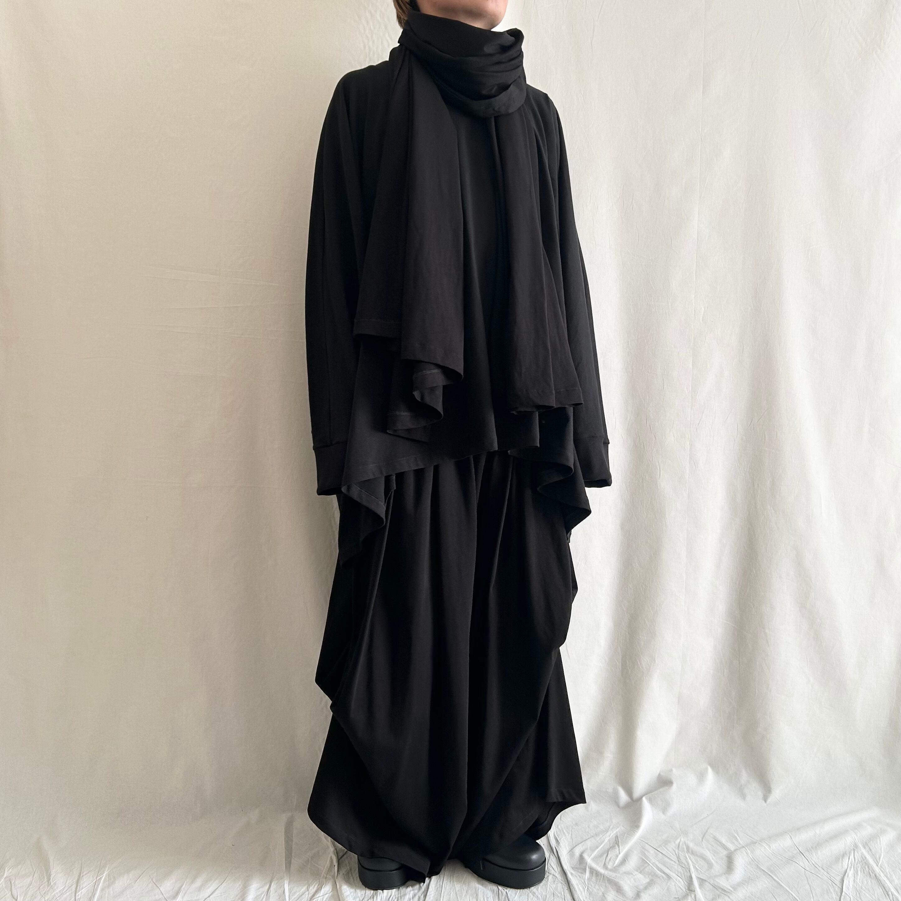nalgeでは、「Drape」をキーワードに黒を基調としたゆるい服を製作しています。