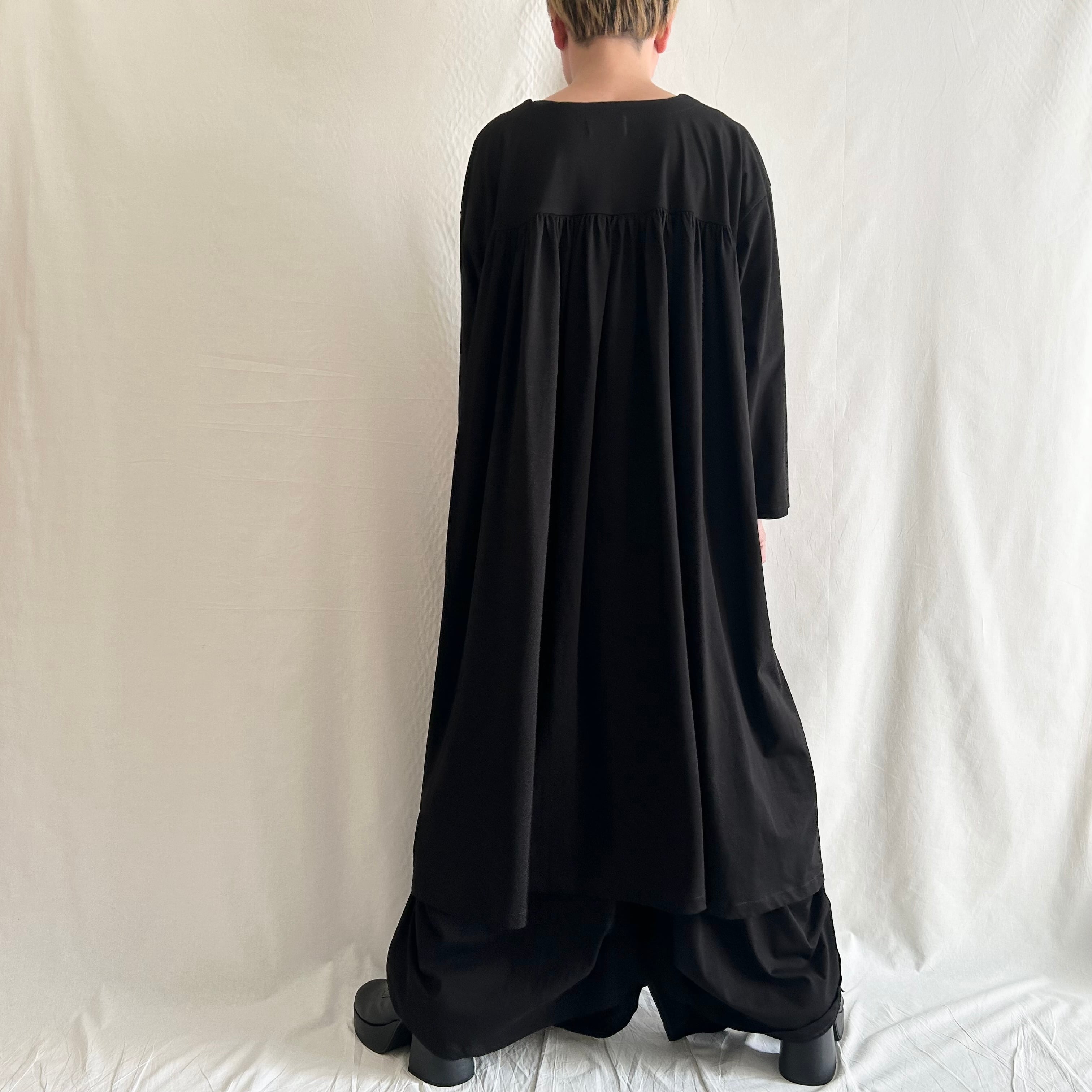 素材は中肉の綿天竺ニットを使用。色は黒。