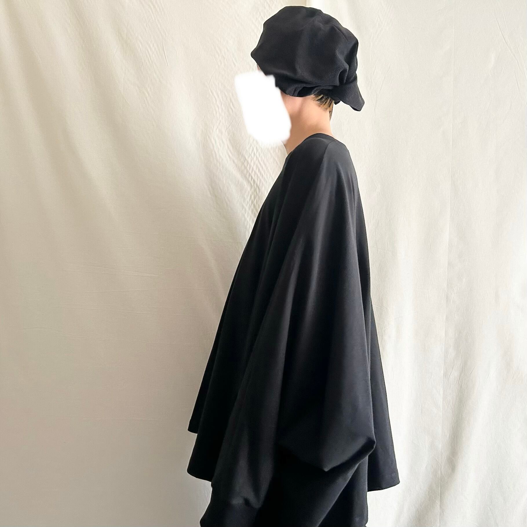 nalgeでは、「Drape」をキーワードに黒を基調としたゆるい服を製作しています。