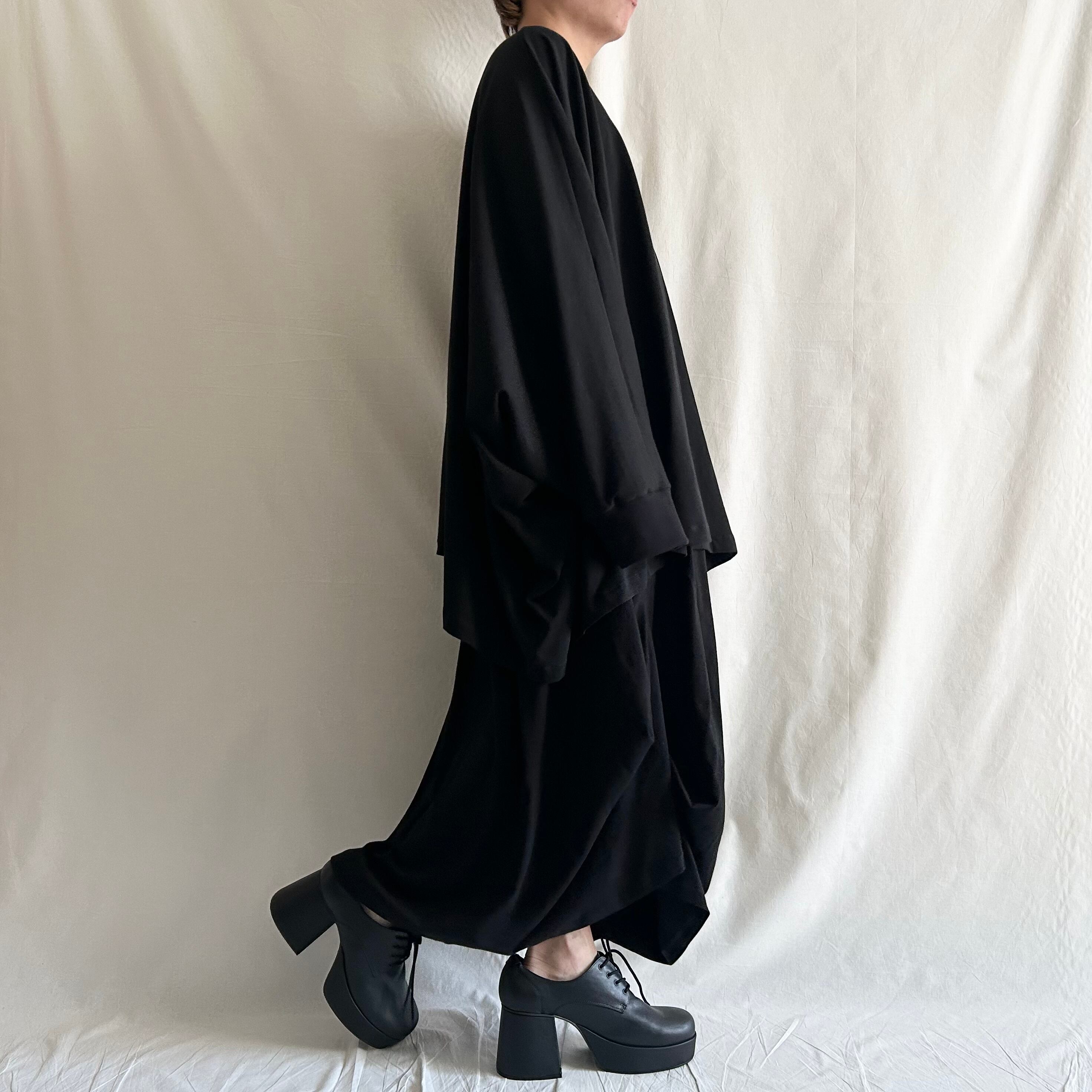 nalgeでは、「Drape」をキーワードに黒を基調としたゆるい服を製作しています。