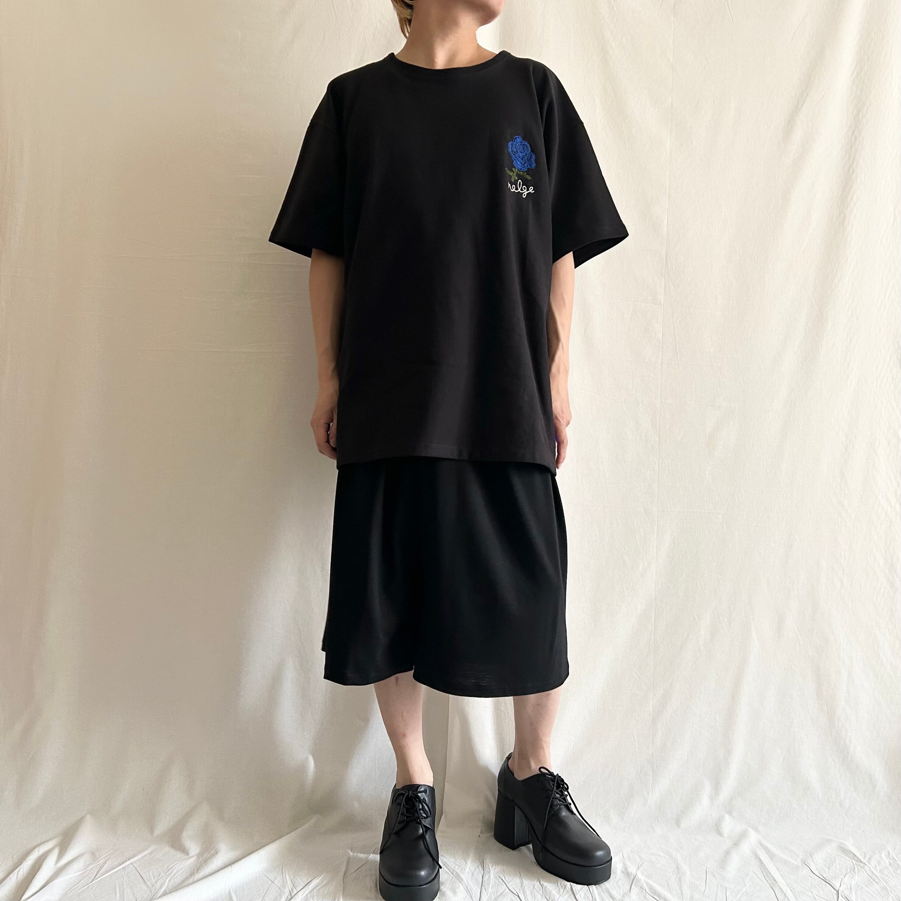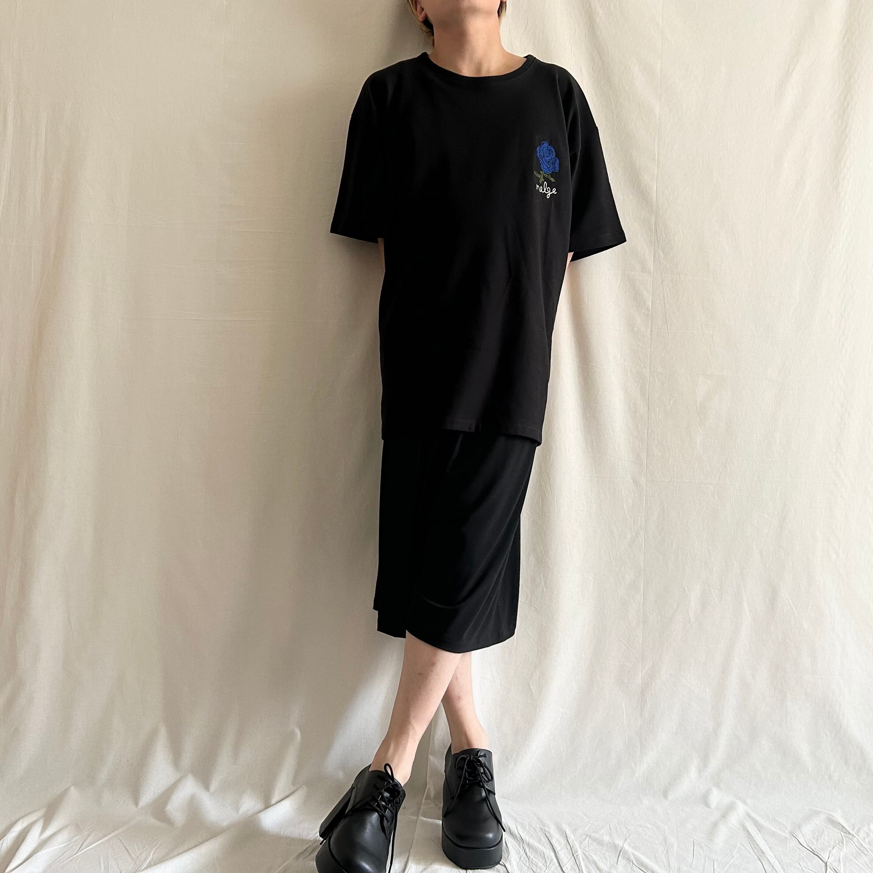 左胸に青い薔薇を刺繍したTシャツを製作しました。