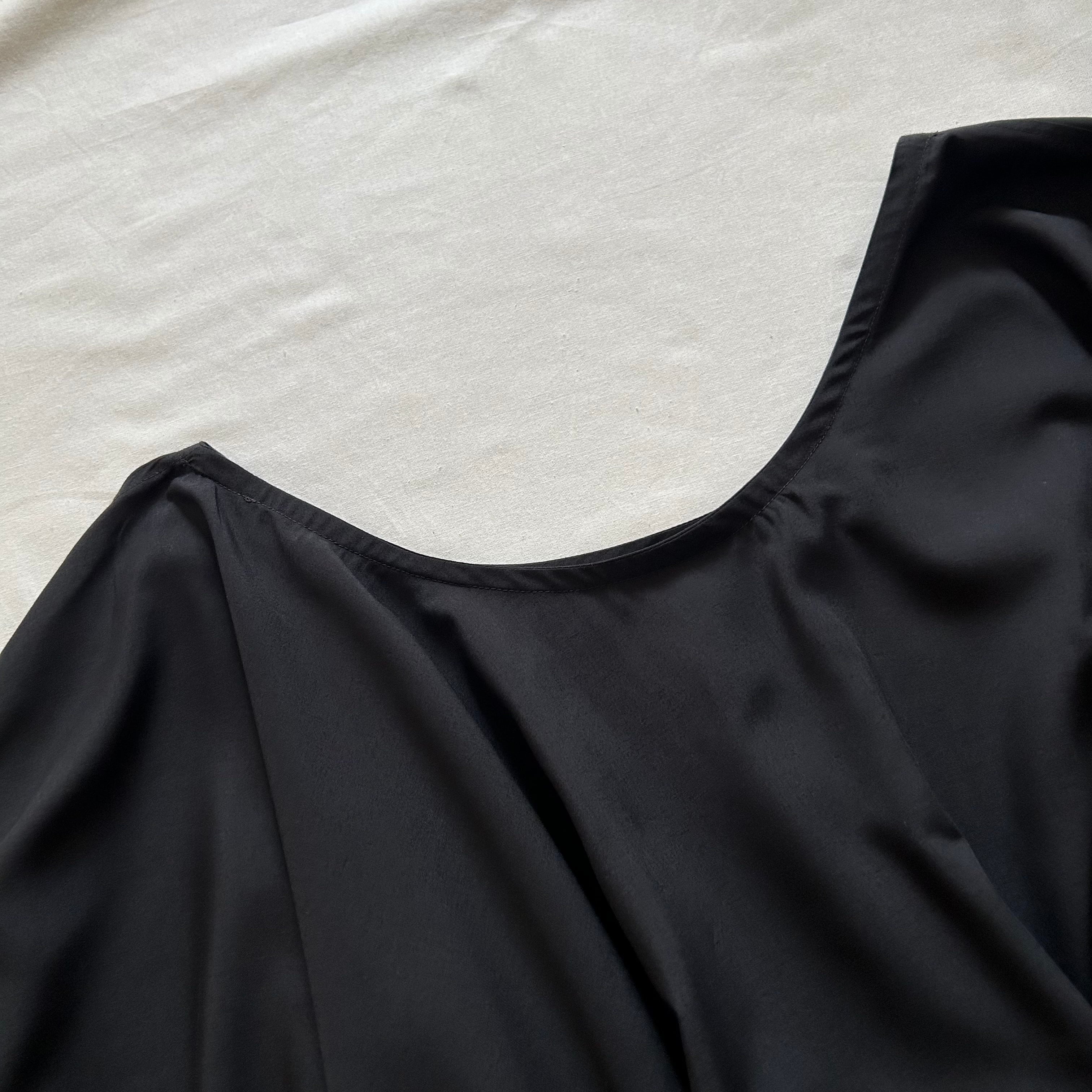 黒よりも深みのある色味で、綿とは違う落ち着いた光沢と落ち感が印象的です。